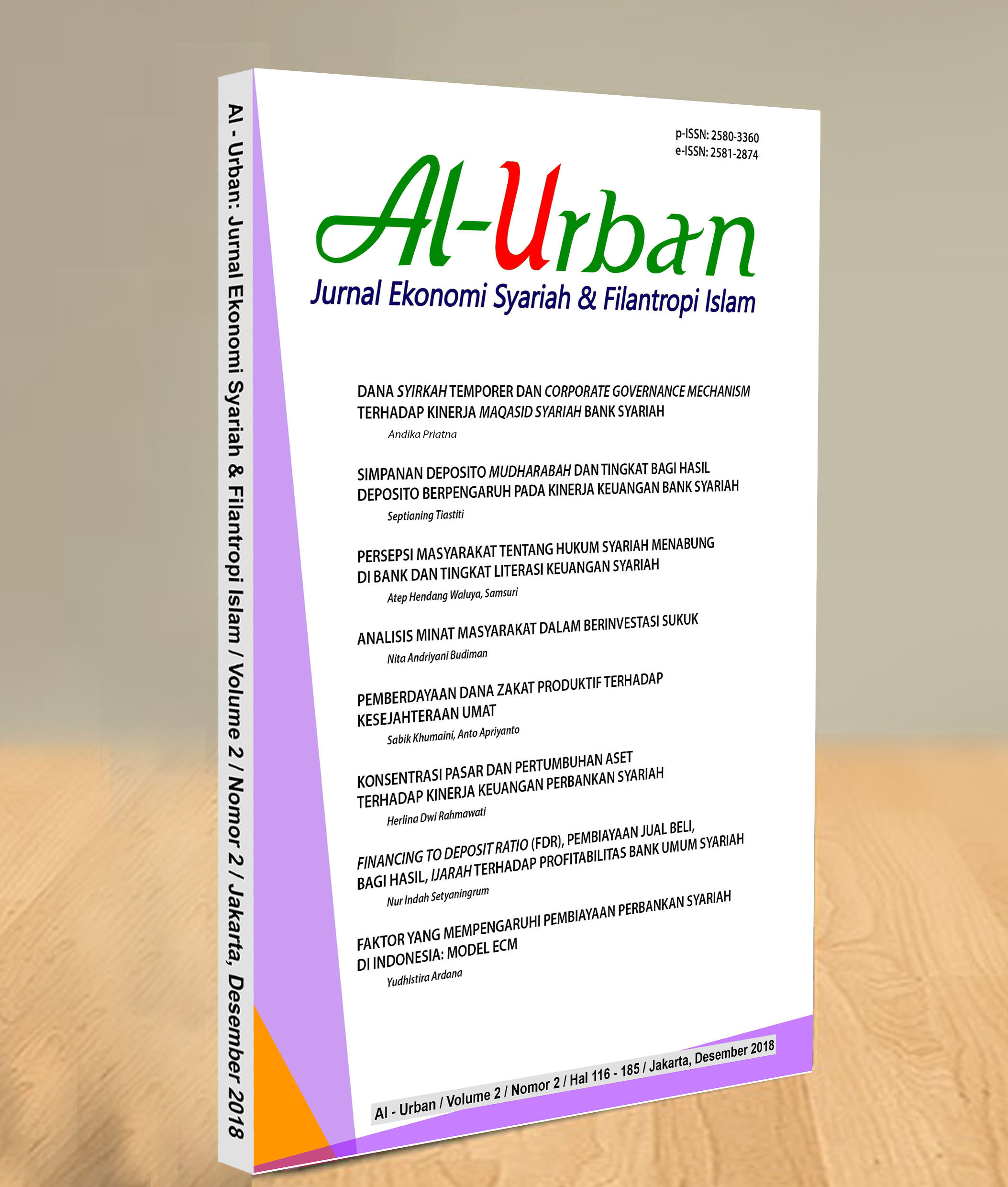 Al-Urban: Jurnal Ekonomi Syariah dan Filantropi Islam (Journal of Islamic Economics and Islamic Philantropy) is aimed at being a medium for research results dissemination and scientific paper exchanges on the Indonesian slamic Economics and Islamic Philantropy among academics, practitioners, regulators, and public. Al-Urban: Jurnal Ekonomi Syariah dan Filantropi Islam (Journal of Islamic Economics and Islamic Philantropy) is issued two times annually, i.e., in June, and December.